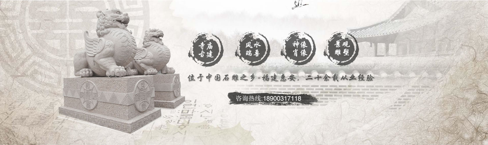福建省九龍星園林古建有限公司坐落于著名的“中國石雕之都”福建省惠安縣,是一家集石材創(chuàng)作、加工、安裝、銷售于一體的石材石雕專業(yè)生產(chǎn)企業(yè)。在石雕牌坊的生產(chǎn)加工上有豐富的經(jīng)驗(yàn)及優(yōu)勢,擁有寬大的廠房、優(yōu)質(zhì)的礦產(chǎn)資源、工藝精湛的雕刻師、工程師及強(qiáng)大的管理團(tuán)隊(duì),多年來精心打造無數(shù)經(jīng)典工程,產(chǎn)品暢銷東南亞、歐美市場及許多國內(nèi)工程,深受海內(nèi)外客商及業(yè)內(nèi)人士的青睞與好評。公司主導(dǎo)經(jīng)營:園林古建筑工程、園林景觀工程、 ...